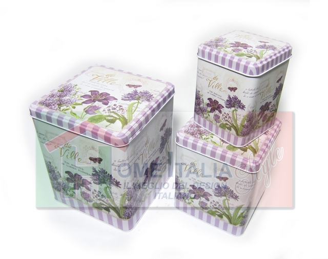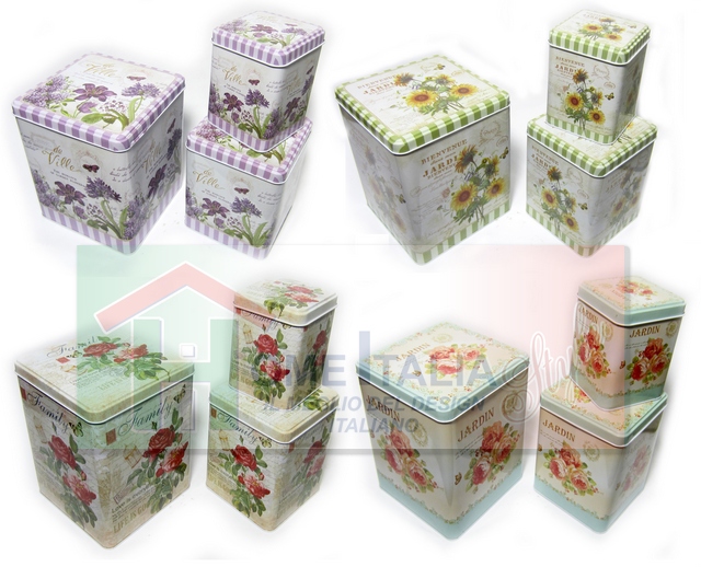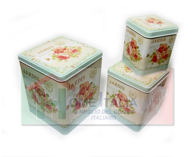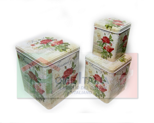 TRIS SCATOLA LATTA QUADRATA FLOWER A[IMJ-2134]