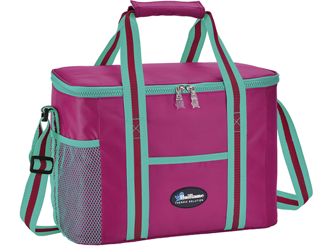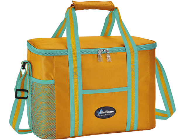 Borsa termica dal designe classico realizzata in poliestere 600D, dotata dipratiche maniglie, tracolla regolabile e tasca frontale. Massimo isolamento in alta densità. Prodotto dal colore assortito.