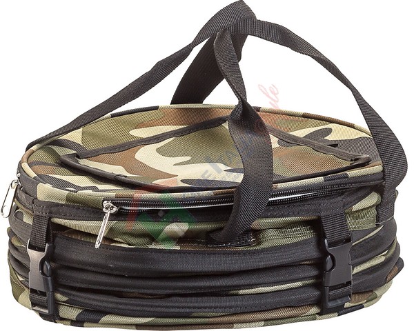Con questa originale e praticissima borsa termica mimetica potrai tenere al fresco cibi e bevande per le tue gite fuori porta, pause pranzo o una giornata al mare. Questa borsa è stata progettata con un sistema salvaspazio davvero innovativo: la borsa è infatti ripiegabile su se stessa, con il minimo ingombro quando non utilizzata. Lo scomparto principale con doppia cerniera lampo, offre spazio verticale a sufficienza per un piccolo picnic o uno spuntino al sacco garantendo un'ottima resa termica grazie al materiale isolante interno con cui è realizzata, adatto al contatto alimentare.