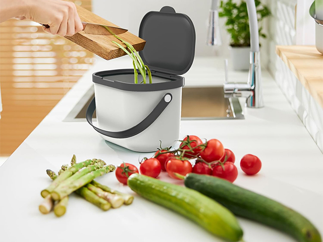 La compostiera con coperchio offre la possibilità di raccogliere i rifiuti dove si accumulano: in cucina. Grazie al suo bel design, fa bella mostra di sé anche sul piano di lavoro e non lascia fuoriuscire odori sgradevoli quando il coperchio è chiuso. I cestini in plastica sono disponibili in diversi colori e sono ideali anche come cestini per i rifiuti da tavola, per raccogliere le capsule del caffè vuote o per conservare detersivi, pastiglie per la lavastoviglie, ecc. Sono facili da pulire con acqua e detersivo per piatti.