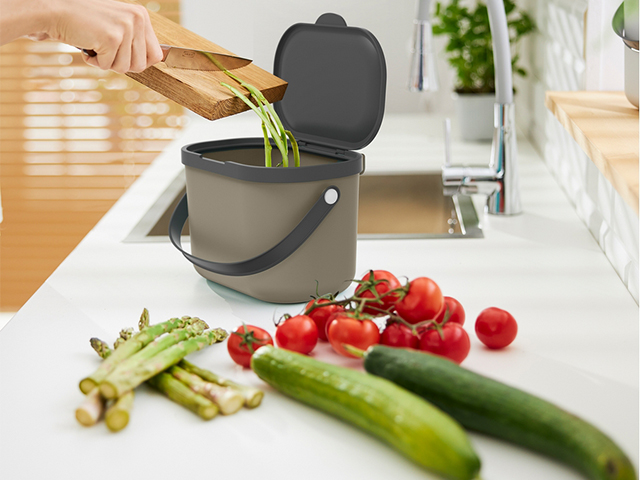 La compostiera con coperchio offre la possibilità di raccogliere i rifiuti dove si accumulano: in cucina. Grazie al suo bel design, fa bella mostra di sé anche sul piano di lavoro e non lascia fuoriuscire odori sgradevoli quando il coperchio è chiuso. I cestini in plastica sono disponibili in diversi colori e sono ideali anche come cestini per i rifiuti da tavola, per raccogliere le capsule del caffè vuote o per conservare detersivi, pastiglie per la lavastoviglie, ecc. Sono facili da pulire con acqua e detersivo per piatti.