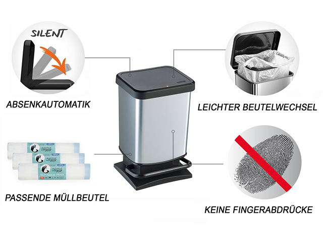 I cestini della linea &ldquoPaso&rdquo combinano un sistema di smaltimento dei rifiuti elegante con una funzionalità assoluta. Con un look in acciaio inossidabile, una forma salvaspazio e un materiale robusto, il cestino per rifiuti è la scelta più utile per la casa. Inoltre, il cestino è estremamente facile da usare grazie al meccanismo a pedale, azionabile da tre lati. La versione rettangolare del cestino a pedale è disponibile in due diverse dimensioni e rappresenta un aiuto perfetto in officina, nella stanza dei bambini, in ufficio, in cucina, in bagno e altro ancora. È facile da pulire e, grazie alla plastica di alta qualità, non lascia impronte o ammaccature e non arrugginisce.