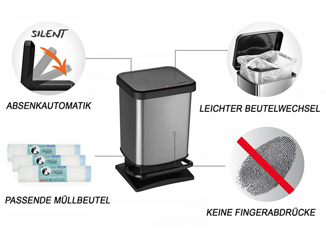 I cestini della linea &ldquoPaso&rdquo combinano un sistema di smaltimento dei rifiuti elegante con una funzionalità assoluta. Con un look in acciaio inossidabile, una forma salvaspazio e un materiale robusto, il cestino per rifiuti è la scelta più utile per la casa. Inoltre, il cestino è estremamente facile da usare grazie al meccanismo a pedale, azionabile da tre lati. La versione rettangolare del cestino a pedale è disponibile in due diverse dimensioni e rappresenta un aiuto perfetto in officina, nella stanza dei bambini, in ufficio, in cucina, in bagno e altro ancora. È facile da pulire e, grazie alla plastica di alta qualità, non lascia impronte o ammaccature e non arrugginisce.