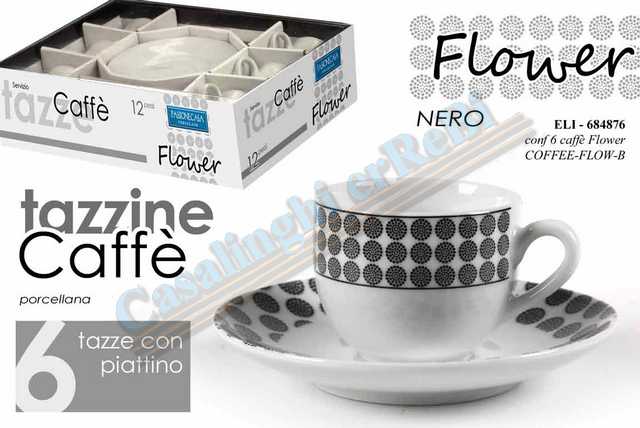 TAZZA CAFFE 6 PZ C/PIATT.FLOWERNERO 684876[GICO1423]